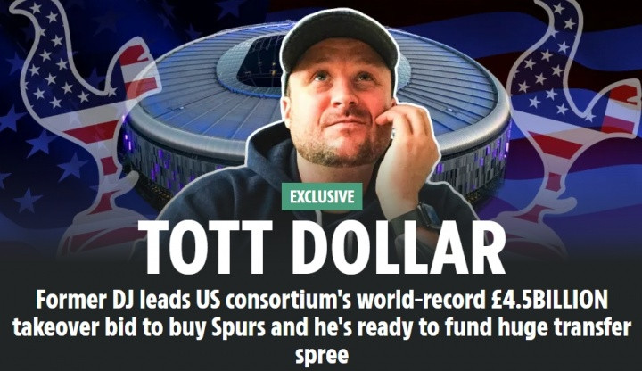 直播吧09月26日讯太阳报独家报道,一家美国财团计划以创世界纪录的45亿英镑总报价买托特纳姆热刺。